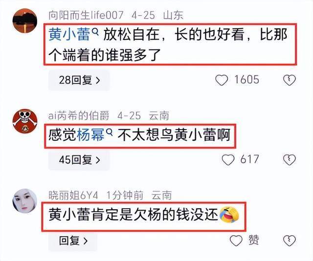 有网友示意杨幂不念念答理黄小蕾,示意杨幂一副不爱答理别东谈主的方式,老是呈现端着的情状,不如黄小蕾阳光。